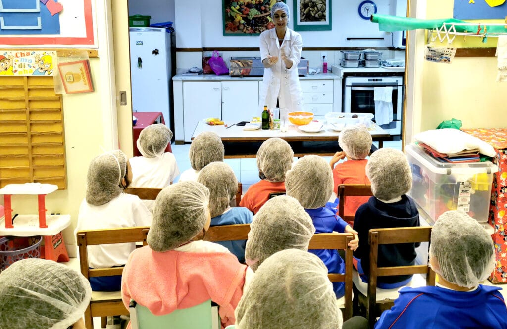 Além de fornecer as refeições, nós promovemos a educação nutricional ativa. Assim, os alunos participam de conversas com nutricionistas sobre preparações saudáveis. Eles também realizam atividades práticas de culinária. Logo, o momento da refeição vira um espaço de aprendizado e novos hábitos.