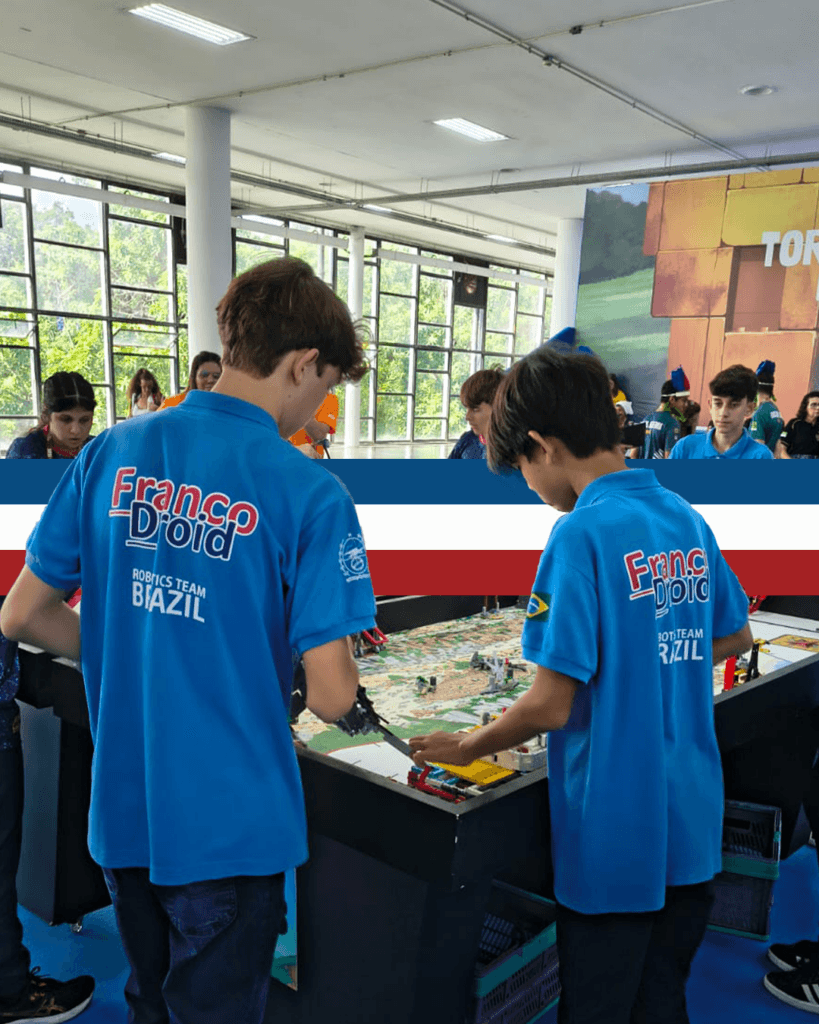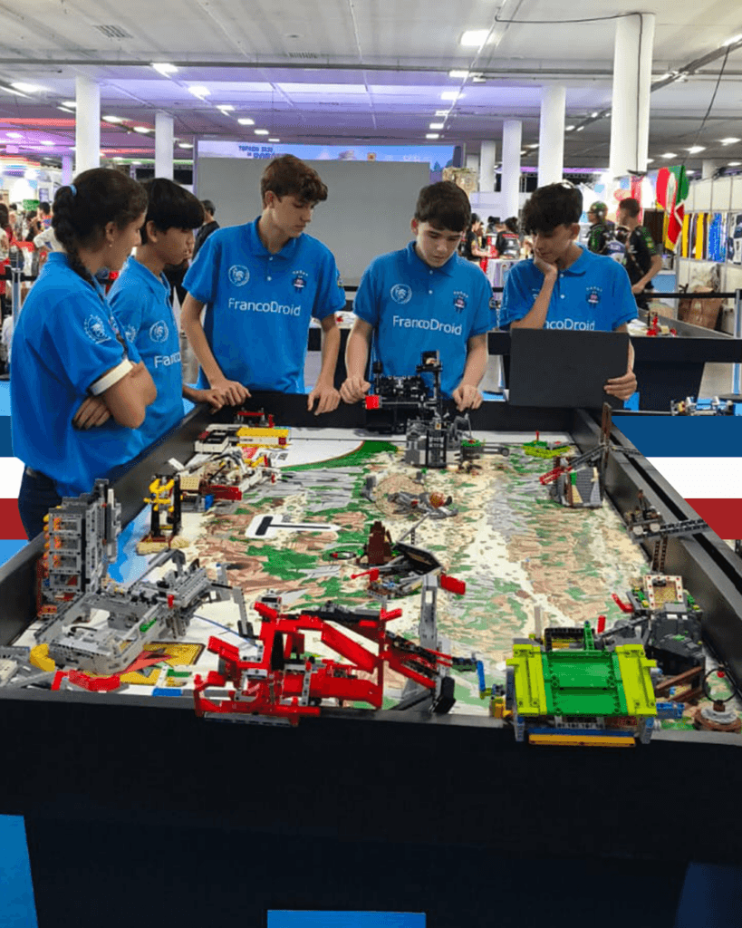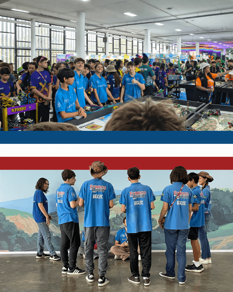 O time de Robótica do Colégio Franco marcou presença em um dos maiores eventos educacionais de tecnologia do país. Entre os dias 5 e 8 de março, a nossa equipe, Francodroid, participou da etapa nacional do Torneio SESI de Robótica, em São Paulo. O evento reuniu 100 equipes de diversos estados, proporcionando um espaço valioso para a troca de experiências e o desenvolvimento de competências científicas.